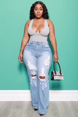 Breaking hearts and taking names, is that how the saying goes? Well it does now. These high waisted jeans are the perfect fit girl. Featuring heavily distressed detailing on the knees and thighs, these jeans go with anything. Rock them with your favorite bodysuit or crop top.?ÿ