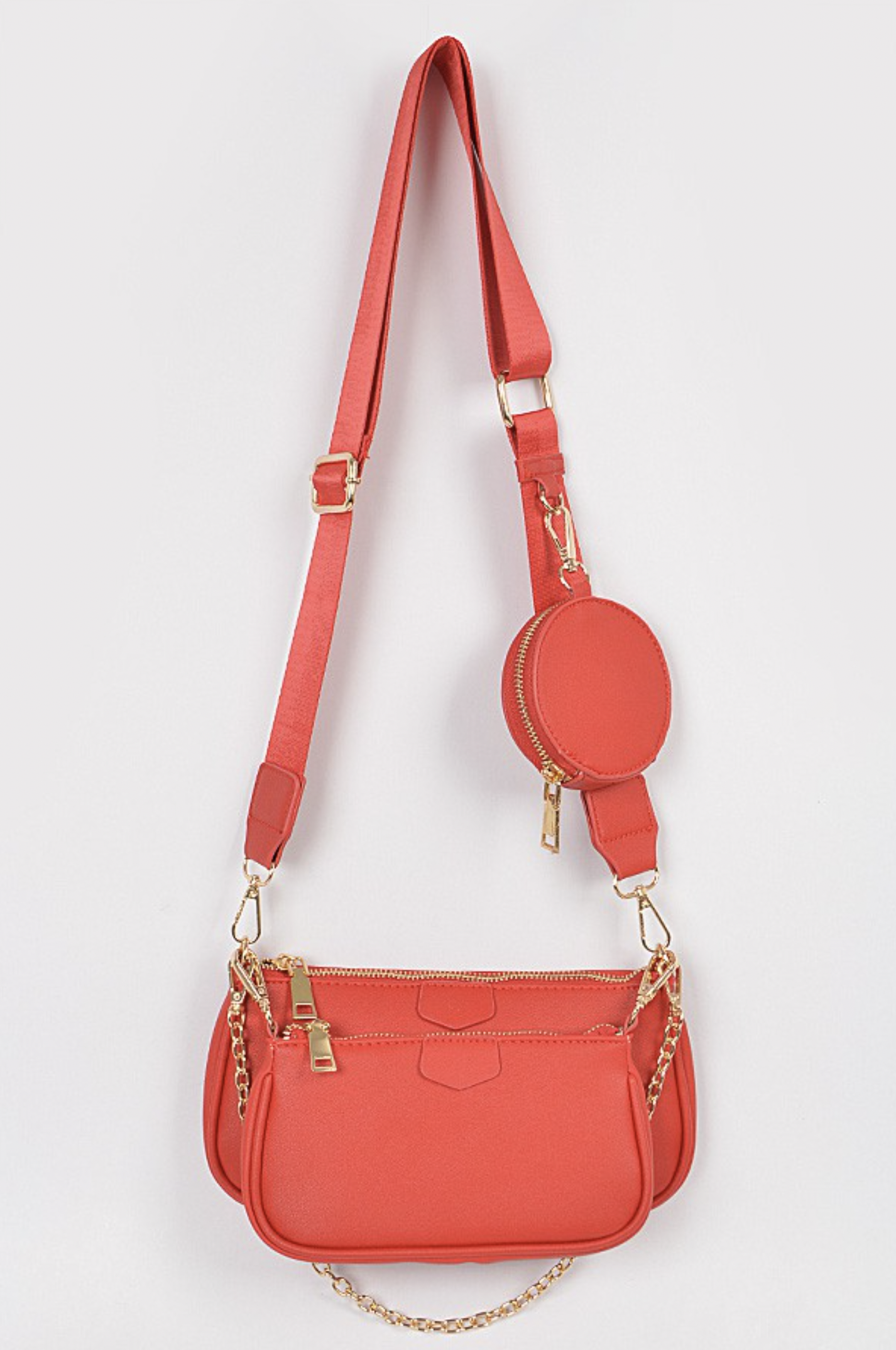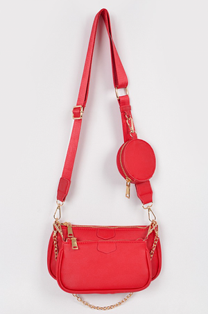 Sis, the only thing you should be chained to this summer is this bag! This faux leather shoulder bag features a matching strap and gold zippers and hardware and loose chain attachments. It also comes with a matching detachable mini purse.