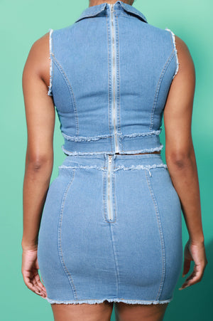 If you really want to dazzle everyone, look no further than this set. This top and skirt set is cropped and stretchy for a snatched fit. The denim material also features jeweled buttons for a little extra sparkle. Perfect for a girls night out!