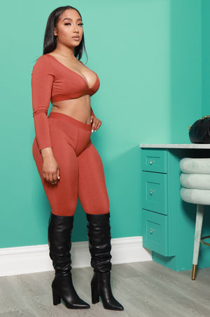 Don't be salty because I'm popping! Be chill and cute in this ribbed pants set. The top is a long sleeve ribbed cropped top with a deep v-neck. The bottoms are high rise ribbed pants. Perfect to pair with your most comfortable sneakers!