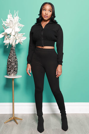 Bestie, you're driving everybody crazy, you need to start telling everyone where you got this outfit from! This set is perfect for fall with its soft stretchy high waisted leggings and matching zipped jacket. The jacket features black stitching and black zippers leading to from the top to the wide banded hem of the jacket. Pair this with your favorite kicks and that's all you need!