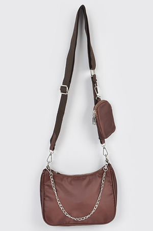 You're always on the go Bestie but you cant slow down. You need this bag for any occasion that comes up. This super soft nylon bag features a wide nylon adjustable shoulder strap and silver chain adornments. It also comes with a detachable mini purse that doubles as an airpod holder.