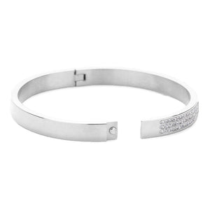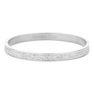 It doesn't have to be winter for you to be dripping in ice Babe. Take any outfit and make it sparkle with this stunning bangle bracelet. Featuring rows of rhinestones and a hinged enclosure, this will ice out any outfit. Rock it with jeans, a dress, whatever you want! Can be worn alone or mix and matched!