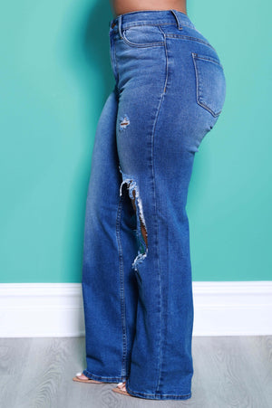 No dress code, no problem. You don't follow the rules, you create them! These jeans are perfect for changing it up with their high waist fit and distressed single knee. You can dress these up with a cute top and heels or just throw on some sneakers for a casual day look.