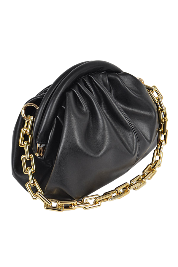 Nova, nova, nova. Every girl needs a good bag, so don't be without one. Pop out with this faux leather clutch with a chain link design strap and a clam-like structure.
