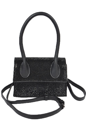 Don't let anyone treat you like anyone other than the Queen you are. Make sure you look the part with this stunning purse. This small sized handbag is perfect for adding just a little extra sparkle to any outfit. Black faux-leather straps are attached to a rhinestone encrusted bag big enough to keep all the essentials inside.