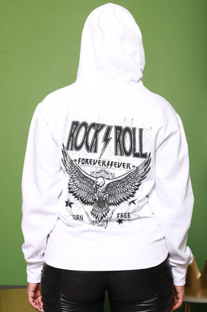 Sis, you're always out here living the rock star life, sometimes you need to take a step back and relax. Make sure not to lose the vibes though and throw on this sweatshirt. Oversized for extra comfort, it features a small rock and roll print on the front and a large black graphic with "rock and roll forever" across the back. Pair with your favorite jeans or biker shorts rock star.