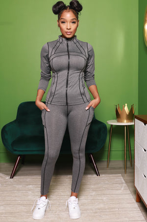 Say It Right Zip Up Athletic Set - Grey